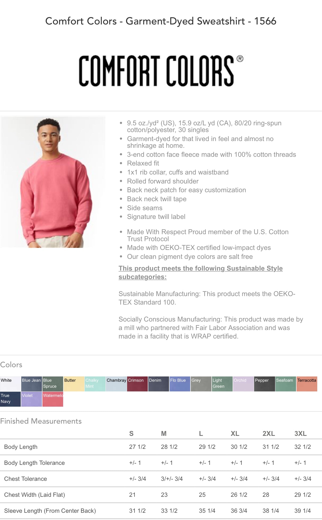 Size up 1-2 sizes for oversized.